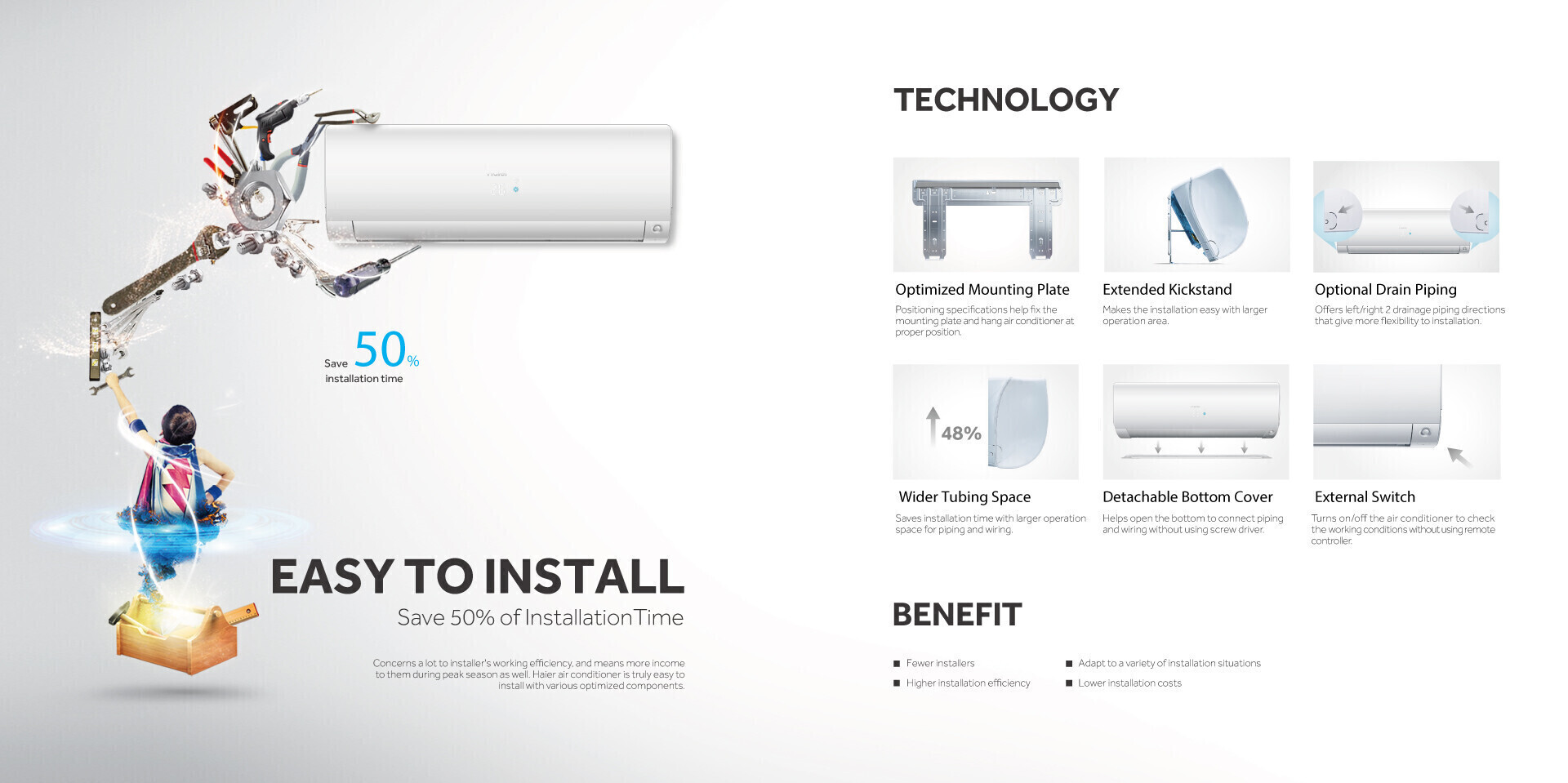| Indoor Unit | Net Dimension (W×D×H) | 1105 × 240 × 345 mm |